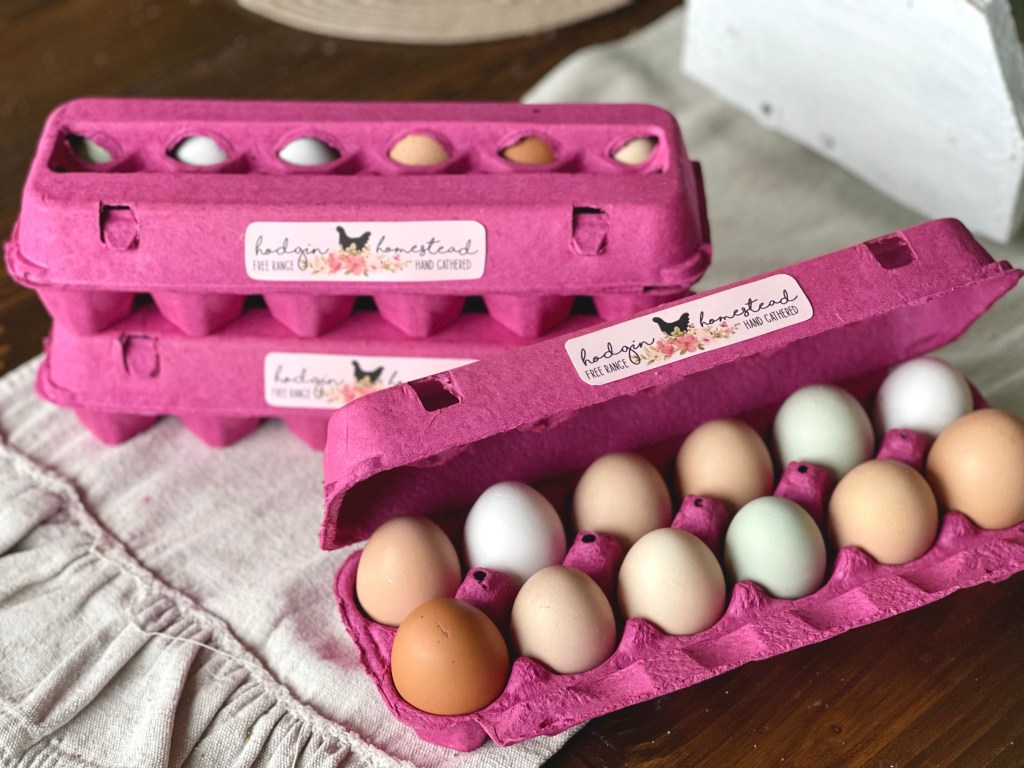 We’ve never had to buy egg cartons before. Normally we reuse the cartons that are generously returned to us (I might have to design some stickers for those fine folks. “I save my egg cartons!” 🏆) But after a typical winter egg shortage, followed by an increased demand thanks to the crazy high price tags at the grocery stores, we were left nearly cartonless. I’ve always admired the pretty custom-designed cartons of homesteaders on Pinterest and Instagram, stamped with their cute logos and clever catch phrases. I scrolled through Etsy and even looked up some printing websites for stickers, but wasn’t finding anything that I could consider “affordable”, being as we sell our eggs ridiculously cheaper than most around here, and a 50 cent sticker really jumps up the price for a dozen eggs.