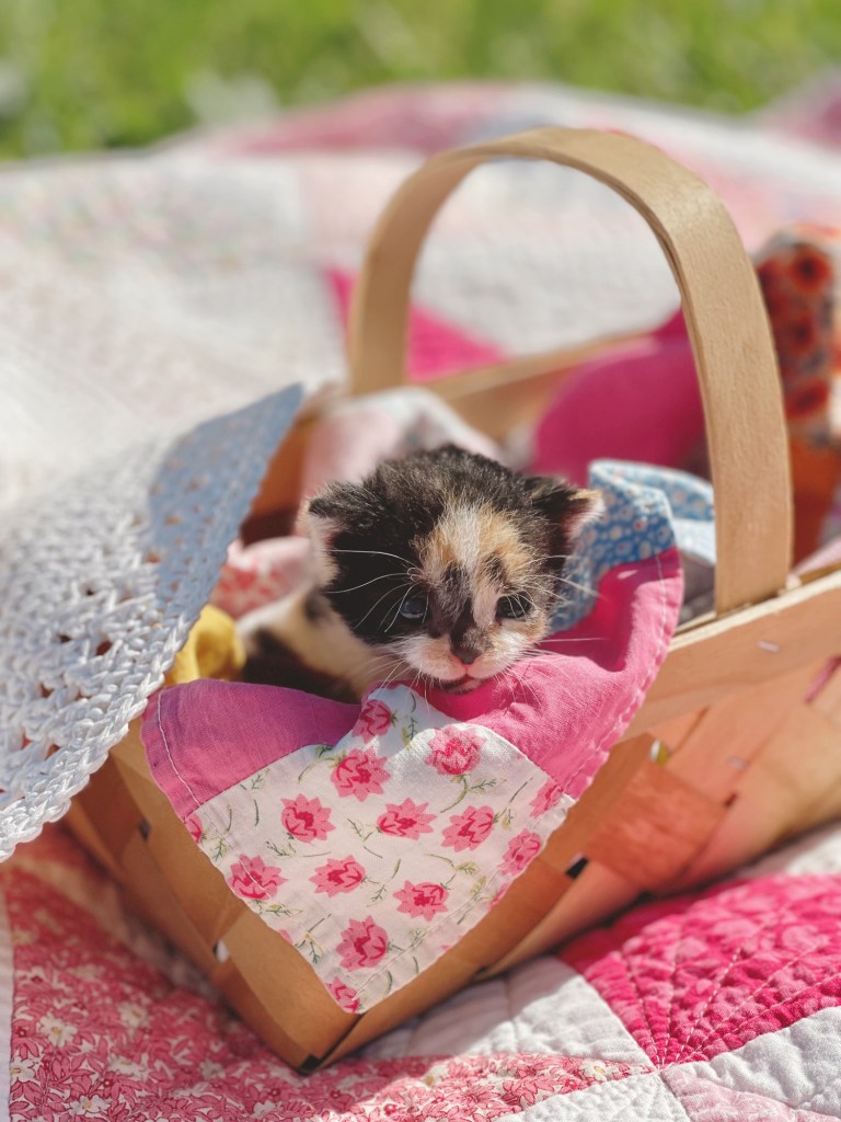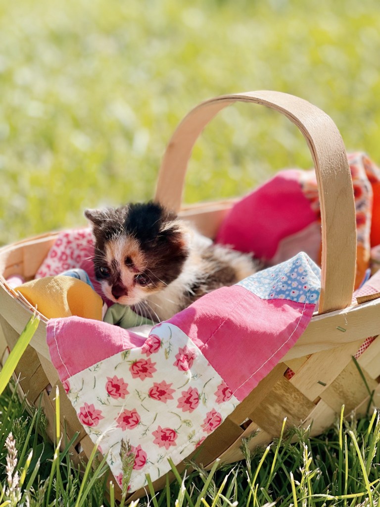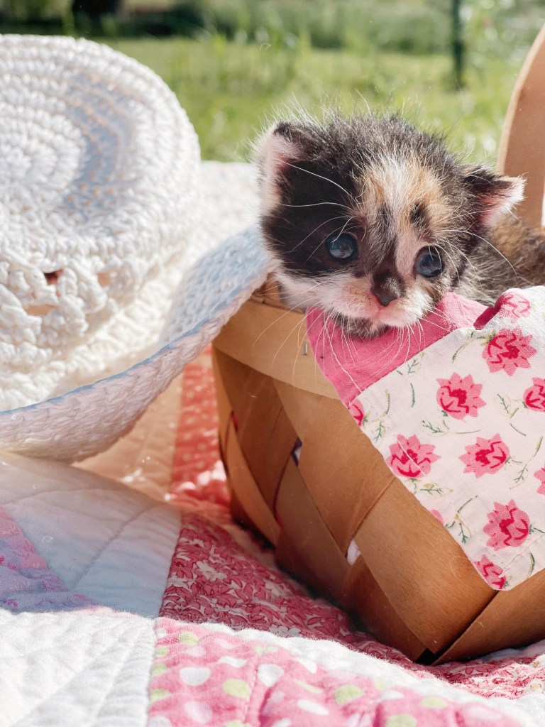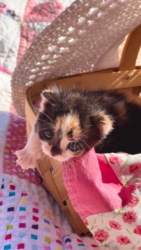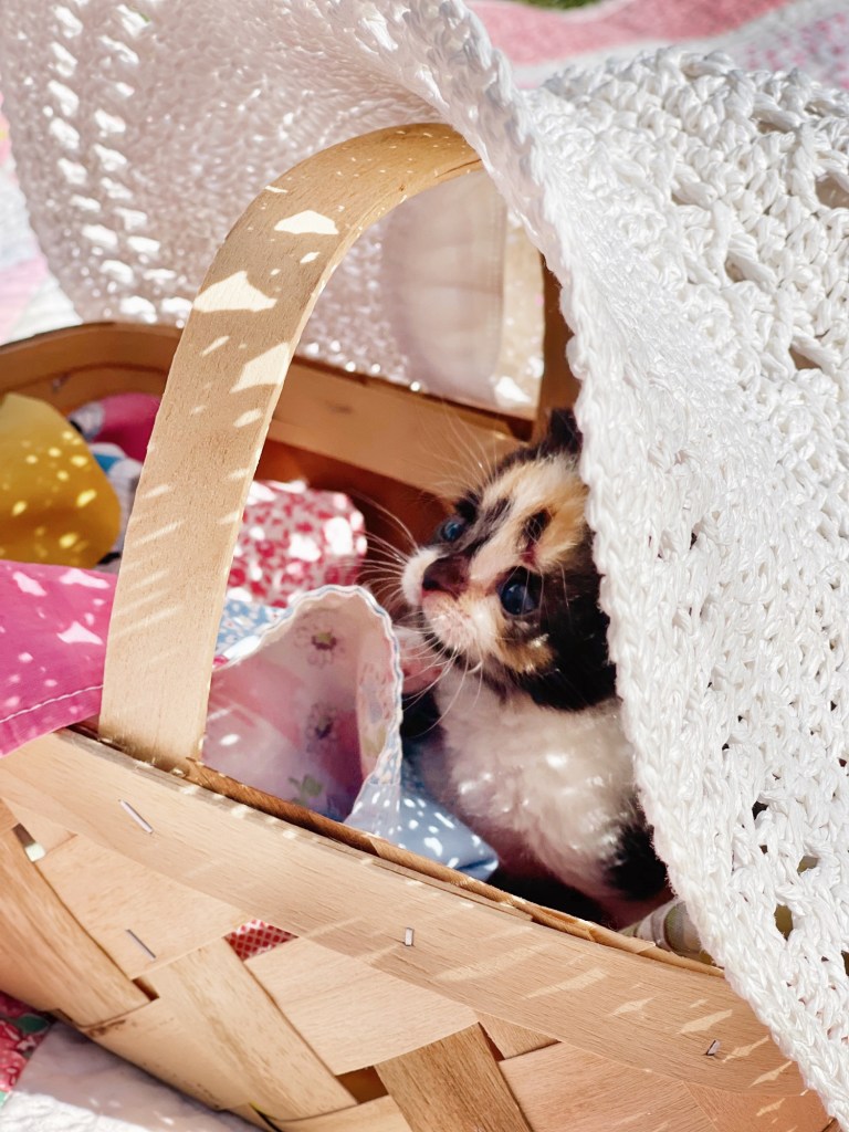 She’s the cutest big-eyed butterball. And you know I can’t miss an opportunity for an adorable kitten-in-a-basket photo op ☺️