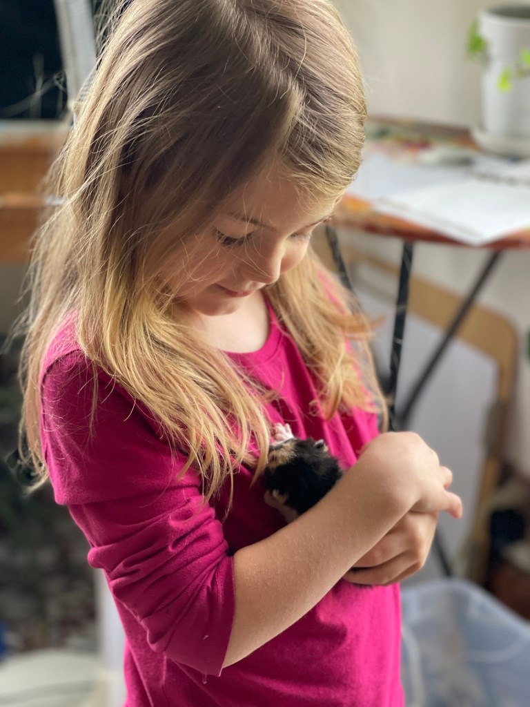 We rescued a tiny kitten a couple weeks ago… the only one of the litter left alive.